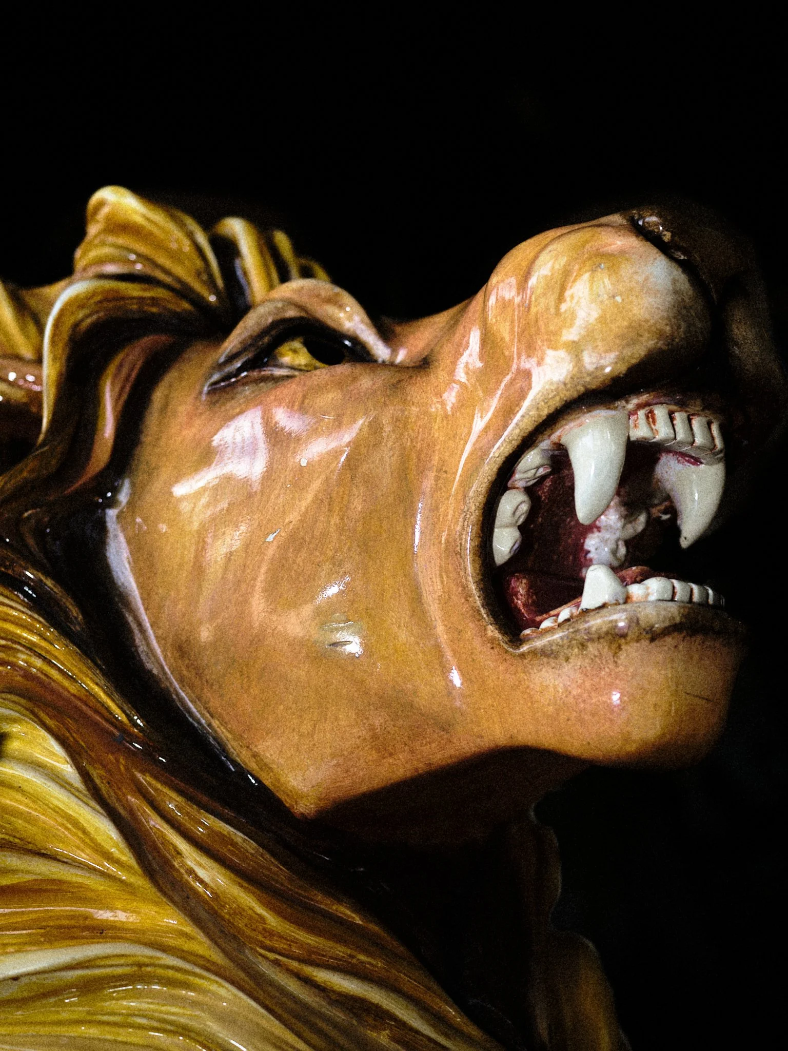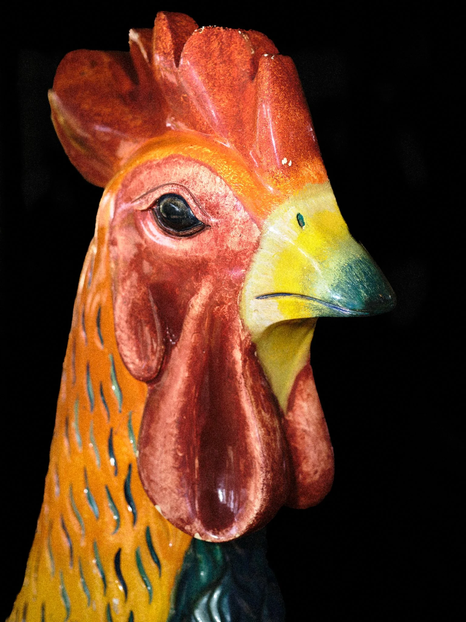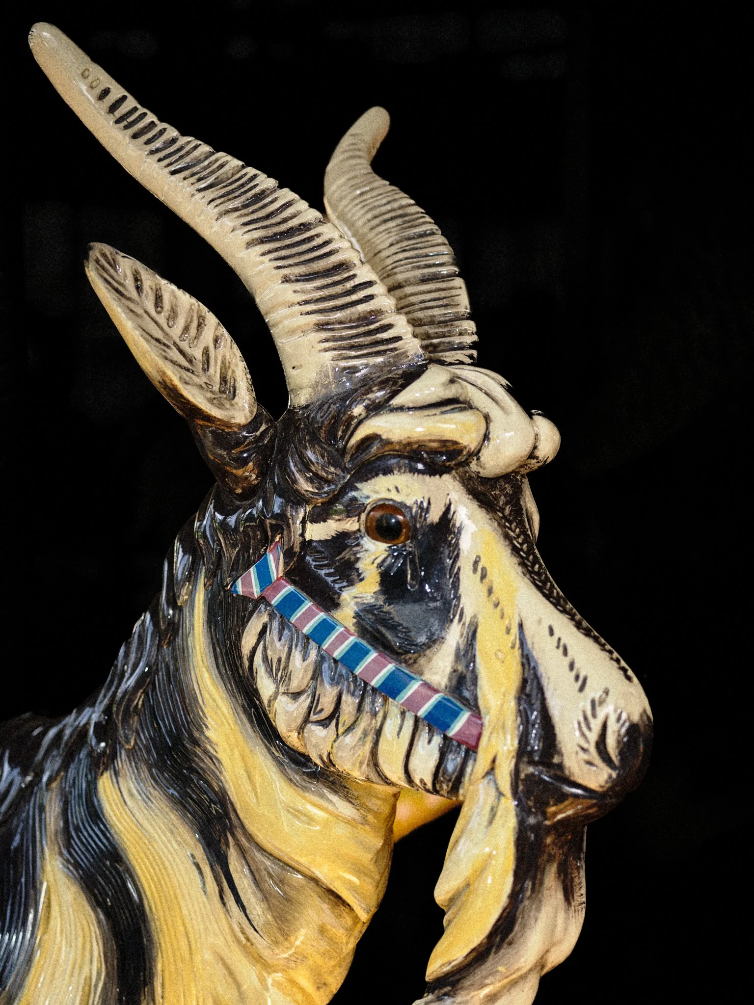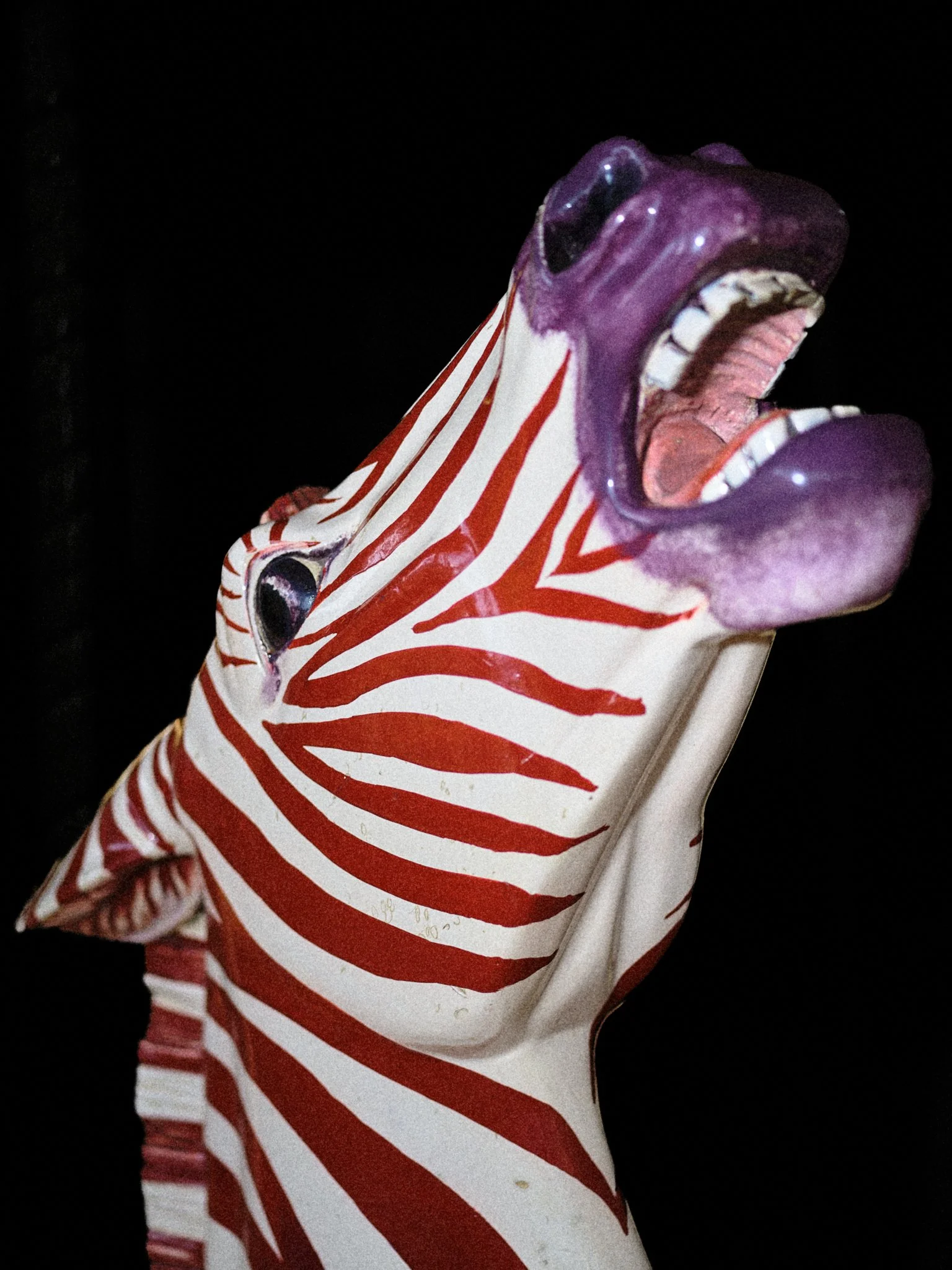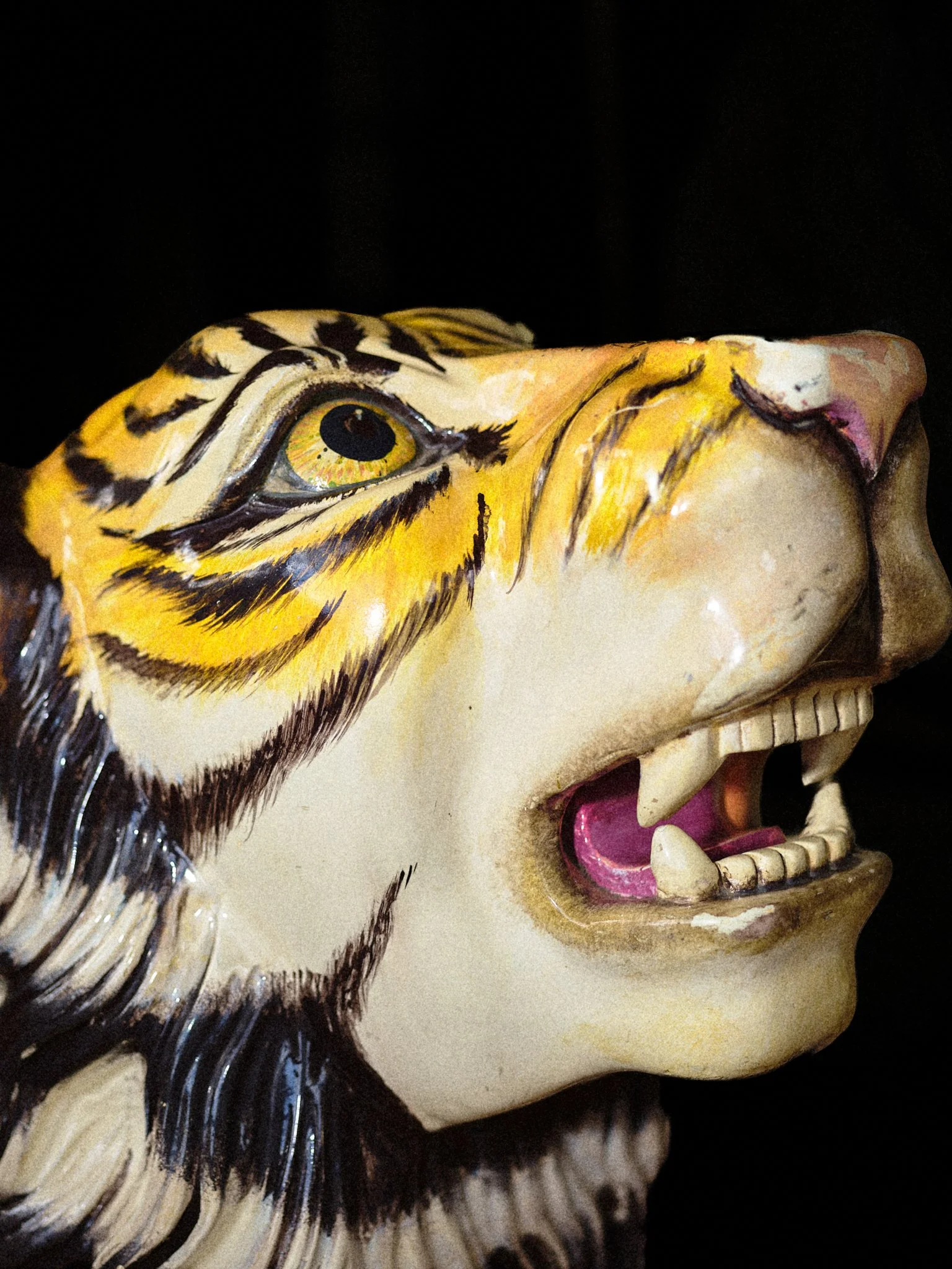 Carousels originated in 12th-century military training, the carosellos or "little wars," where knights practiced combat through competitive spectacle. By the 19th century, these machines had been rebranded for pleasure, their surfaces glazed in saturated pigments and their expressions fixed in theatrical panic. This project explores the tension between the carousel’s festive facade and its aggressive martial history. By focusing on the "Philadelphia Style" of carving, which is characterized by flared nostrils and wide eyes, these images capture animals caught in a permanent state of fight-or-flight. Isolated against a black void, the intensity of these carved forms becomes impossible to ignore, stripping away childhood nostalgia to reveal a raw, sculptural aggression.